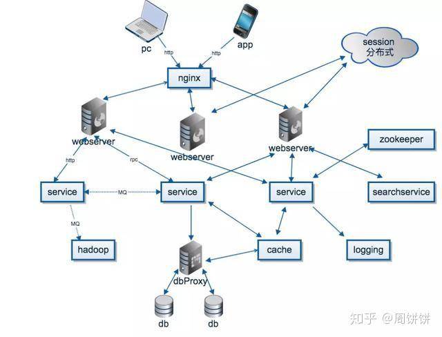 - SOA (Service-Oriented Architecture): 面向服务的架构,是分布式思想的早期实践。它强调将应用功能划分为可重用的服务,通过企业服务总线(ESB)进行集成。ESB承担了服务路由、协议转换、消息转换等复杂功能,但容易成为性能瓶颈和单点故障。